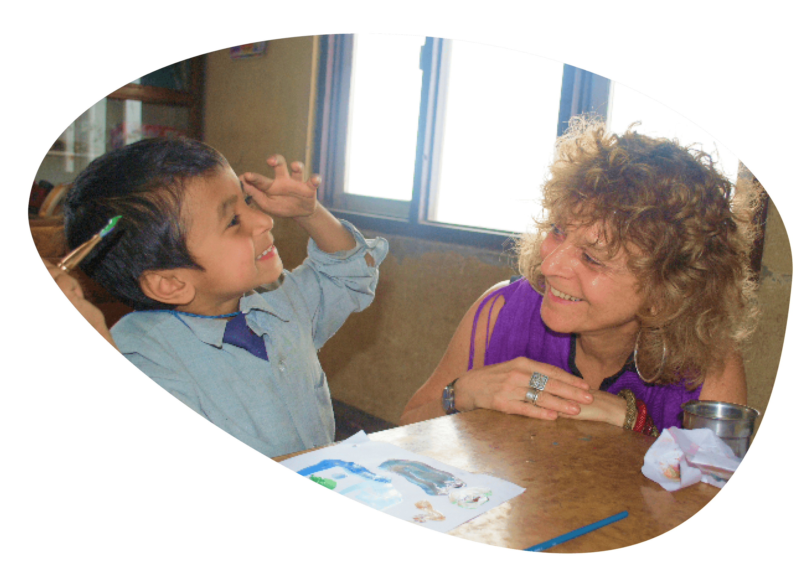 “Katie started coming to our weekly DrawBridge art group at the age of 5. Her gaze was downcast and she never smiled. After just a few art sessions… her mother told me that Katie was waking up excitedly every single morning and asking, ‘Is today art day?’ It’s been 6 years now, and Katie still jumps into my arms every week!”