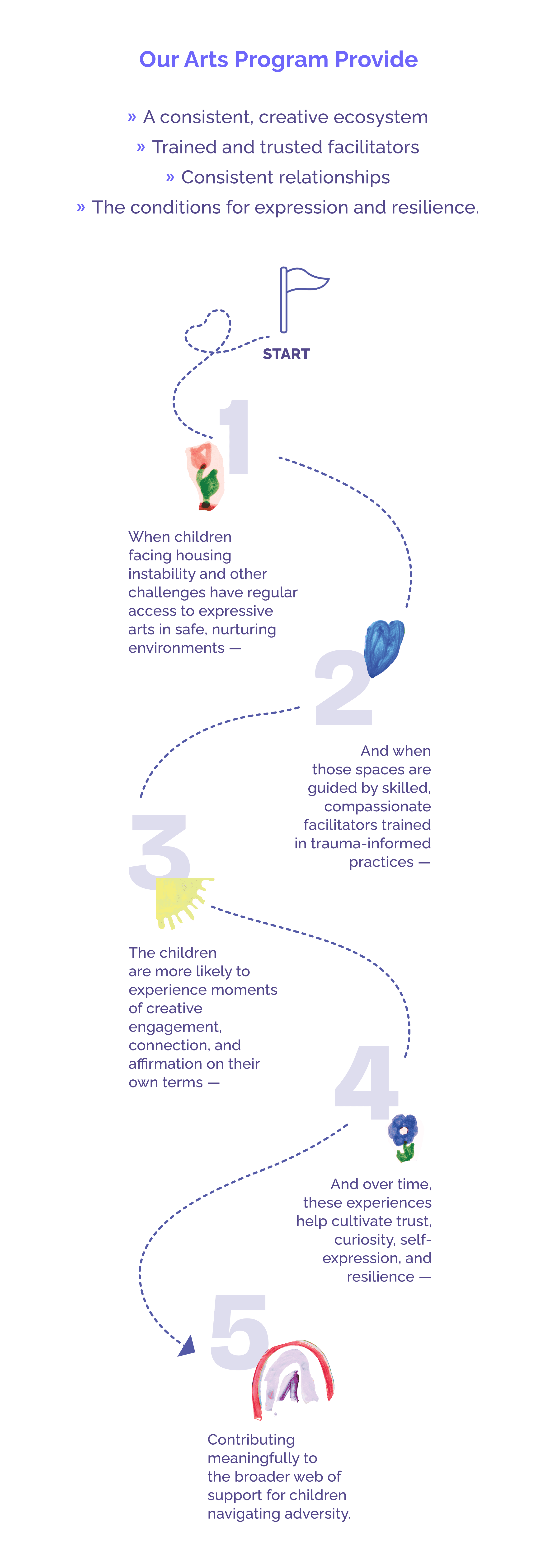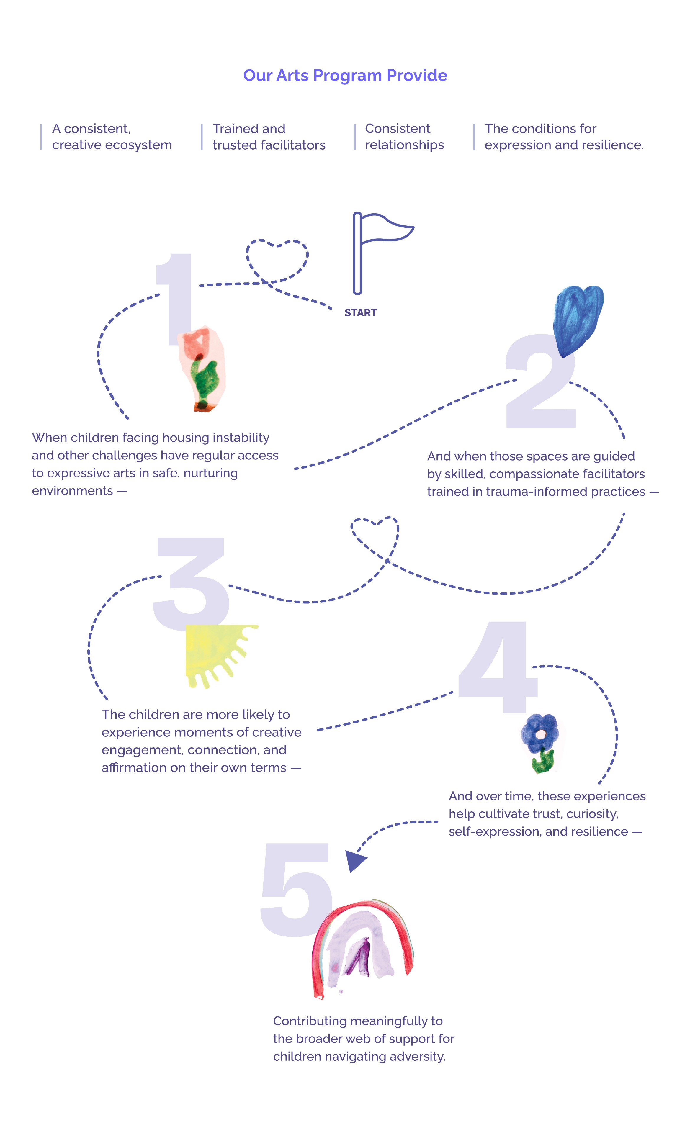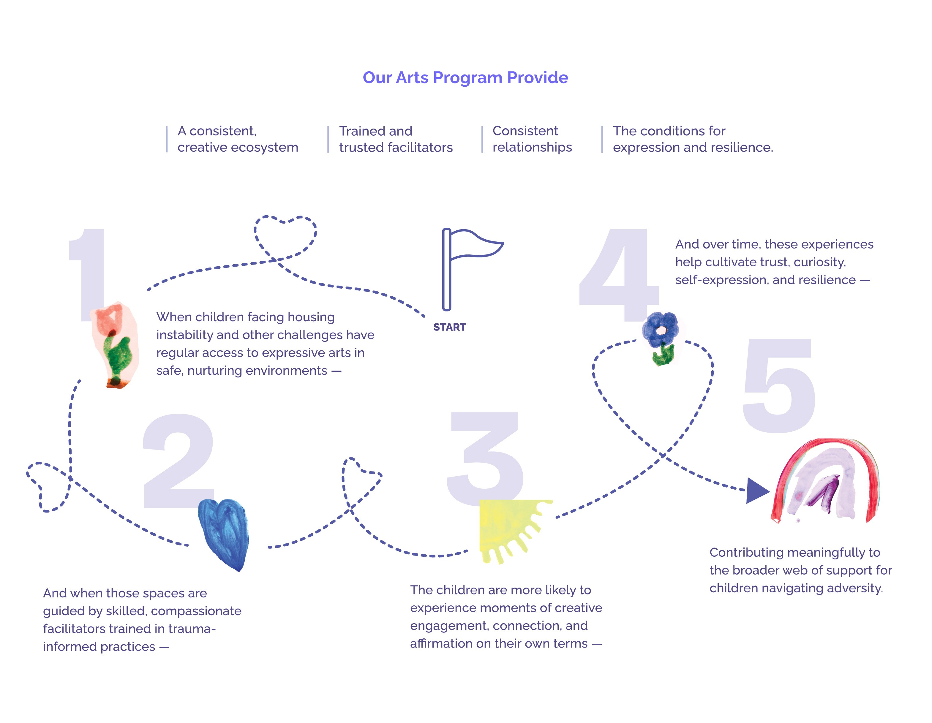 When children facing housing instability and other challenges have a regular access to expressive arts in safe, nurturing environments-